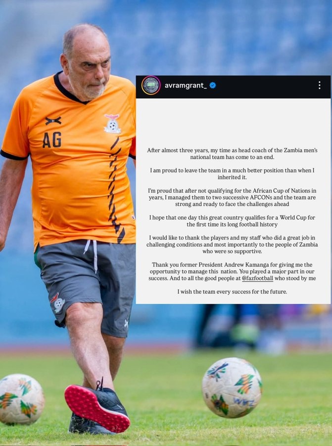 10月29日讯 格兰特社媒发文阐述,他将不再担任赞比亚主帅。