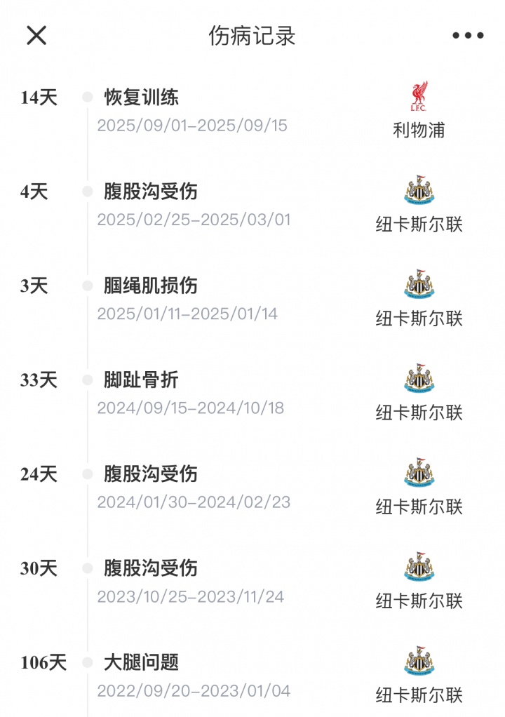 伊萨克此前曾3次碰到腹股沟伤情↓