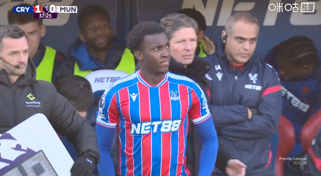 11月30日讯 英超第13轮,曼联客战水晶宫,第38分钟水晶宫队用恩凯提亚换下萨尔。