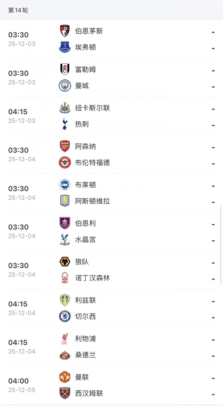 12月02日讯 天外体育意象第14轮英超赛果,天外看好利物浦、阿森纳持续取胜,切尔西、曼联打平,曼城爆冷负富勒姆。