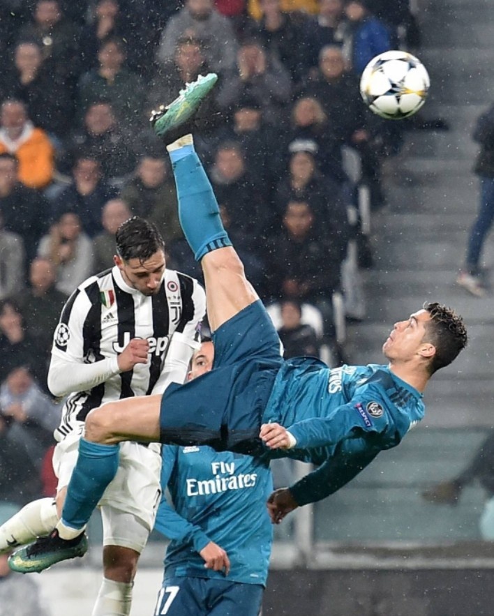 2018年4月7日,C罗代表皇马在欧冠比赛中精彩倒钩,攻破尤文球门