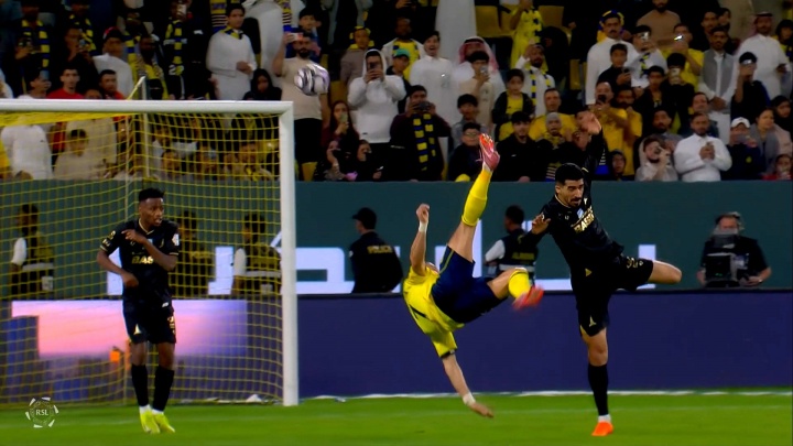 C罗本日代表利雅得告捷打进的精彩倒钩