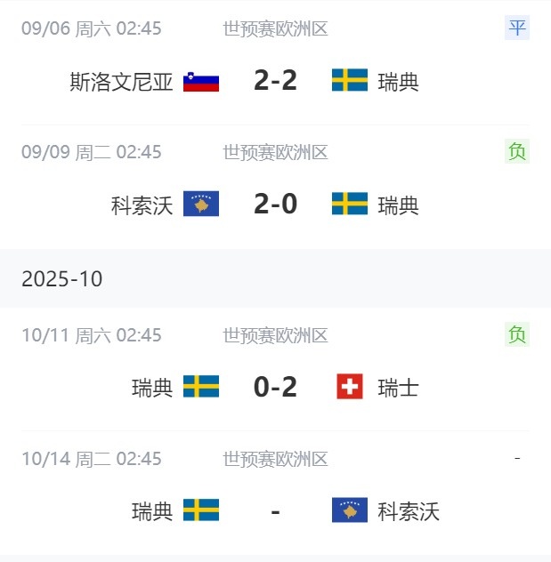 10月11日讯 世初赛欧洲区小组赛B组第3轮,瑞典主场0-2不敌瑞士,际遇三场不堪,现时小组垫底,出线告急。