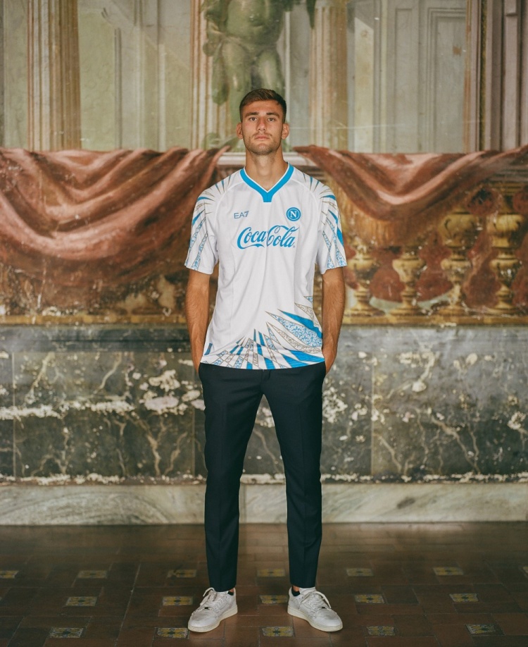 诡计亮点是球衣上的地砖几何图案:这一诡计理念十分问候了坎帕尼亚地区的波旁王室居所:波蒂奇皇宫,诡计聚首了历史的优雅和开荒的当代感,酿成了前卫与足球的私有聚首。并以金色点缀,唤起了皇家居所的遮挡格调。清醒且当代的诡计线条再行诠释注解了壁画和马赛克的丽都。