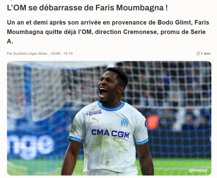 8月26日讯 据意太空报说念称,25岁马赛时尚穆巴纳将租赁加盟克雷莫纳。