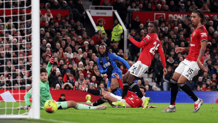虎扑12月16日讯英超第16轮,曼联镇守老特拉福德迎战伯恩茅斯,两队献技进球大战,最终两边4-4战平。