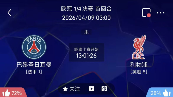 周三005欧冠:巴黎圣日耳曼VS利物浦 赛事 时间:2026-04-09 03:00