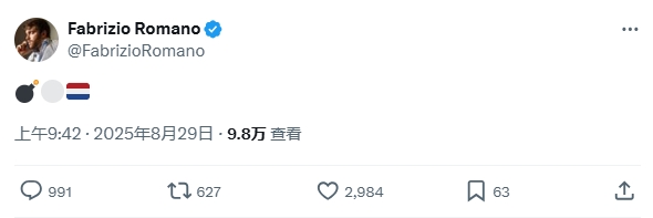 北京期间上昼9点42(当地期间凌晨3:42),罗马诺发推炸弹+白衣+荷兰,2分钟就有1000驳斥。