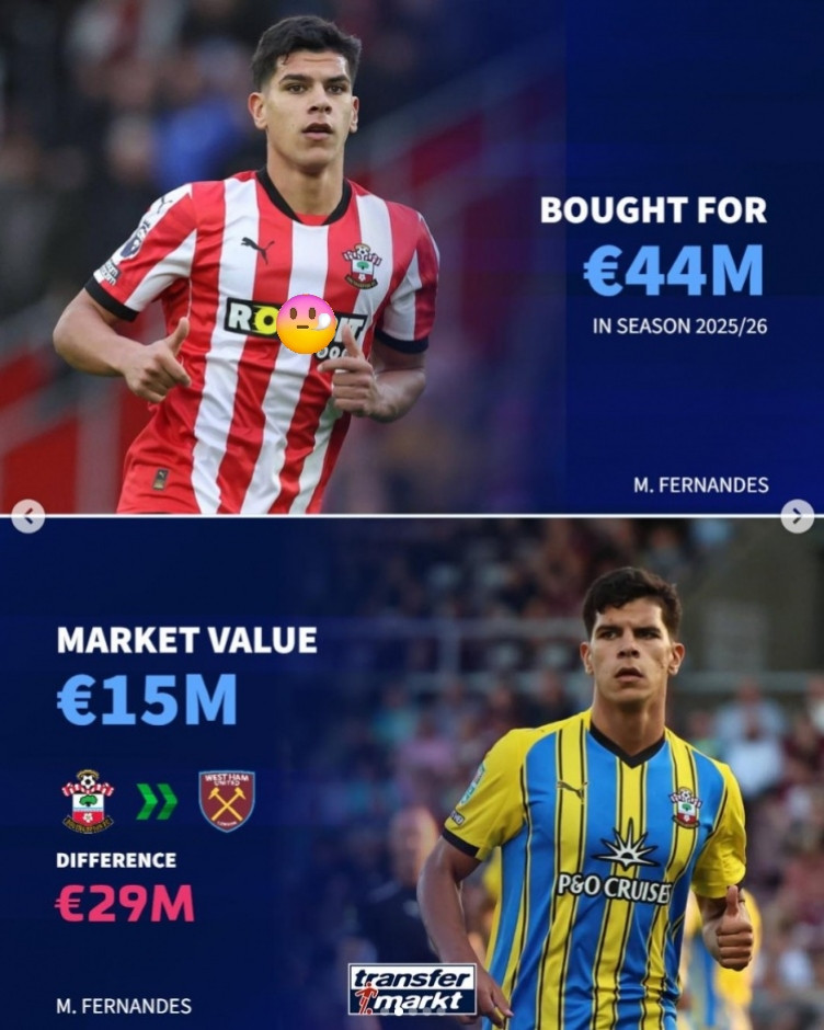 马特乌斯-费尔南德斯:以4400万欧元的转会费从南安普顿加盟西汉姆联,身价1500万欧元,溢价2900万欧元。