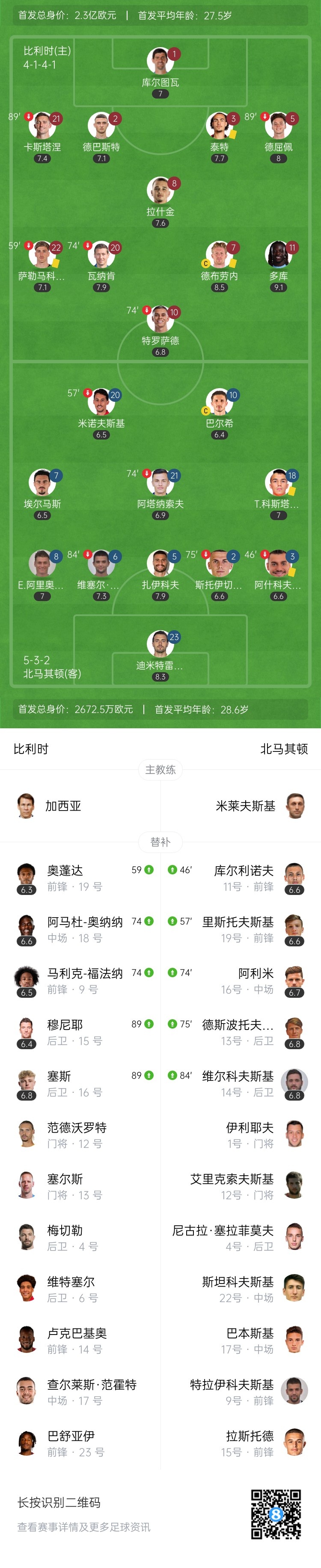本轮事后,比利时5场3胜2平以11分排在小组第二,北马其顿多赛1场以3胜3平积12分排在第一。