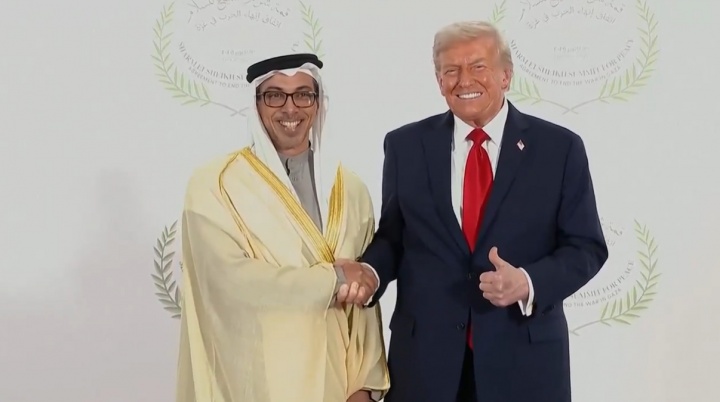 10月14日讯 好意思国总统特朗普会面了阿联酋副总理曼苏尔,特朗普与其捏手时笑颜满面:“特别多的资金,无穷的资金,特别好的东说念主。”
