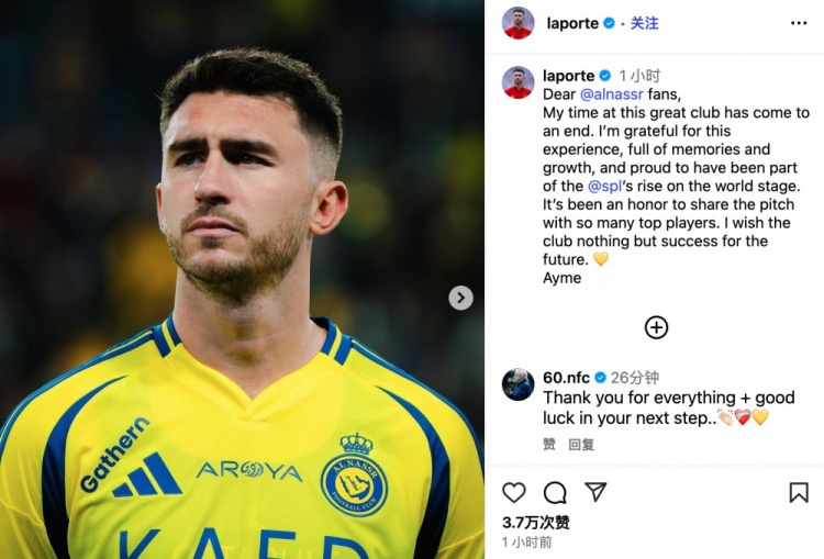 我在这家伟大俱乐部的时光也曾画上句号,关于这段充满回忆与成长的阅历,我心胸谢意,我为成为沙特联赛辞寰宇舞台崛起的一部分而感到自爱,能与开阔顶级球员并肩往来是我的侥幸。